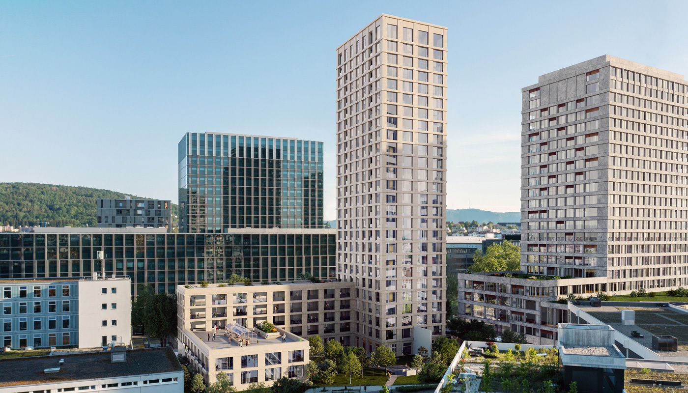 Über den Dächern von Oerlikon ist der Apéro schon in vollem Gang. Unaufdringliche Musik klingt aus den Lautsprechern. Im grosszügigen Eingangsbereich begrüsst Sie ein üppiger Strauss Lilien auf einem runden Mahagonitisch. Ihre Gastgeber empfangen Sie herzlich in der offenen Küche, die nahtlos in einen Wohn- und Essbereich übergeht. Auf der Arbeitsfläche aus stahlgrauem Granit sind Cocktails und Häppchen angerichtet. Vor den Panoramafenstern haben sich bereits einige Gäste versammelt, um den Ausblick auf die Stadt zu bewundern. Mit einem Getränk in der Hand wandern Sie durch die Räume, tiefer hinein in die langgestreckte Wohnung, die eine ganze Hälfte des Stockwerks einnimmt. Kleine Gruppen von Gästen haben sich auf die zwei Loggien zurückgezogen. Die Gastgeberin zeigt die begehbare Ankleide aus edlem Eichenholz – ein repräsentatives Zuhause für modische Schätze. Dahinter liegt der ganze Stolz der Bewohner: ein eigenes kleines Wellnessparadies mit einer grossen, modernen Badewanne, das direkt an das offene Schlafzimmer angrenzt. Vom Bett aus blickt man durch die raumhohen Fenster auf die Lichter der Stadt. «Einfach nur himmlisch!»